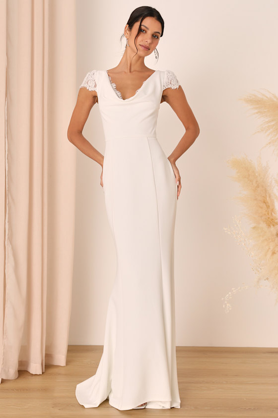 Forever Beloved White Lace Cap Sleeve Mermaid Maxi Dress Dress